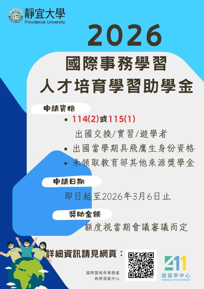 【飛鷹助學金申請公告】2026年靜宜大學國際事務學習人才培育